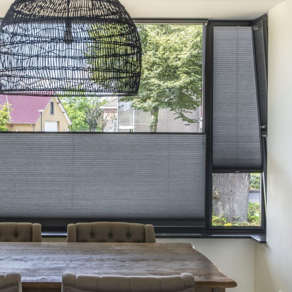 Door de honingraat vorm van de plooien is dit gordijn een feest voor het oog! De koorden zijn niet tot nauwelijks zichtbaar wat zorgt voor een strak geheel.