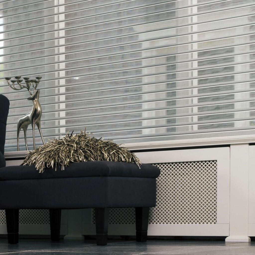Een sheerlight bestaat uit twee transparante stoffen met daartussen horizontale stoffen banen. Je kunt met het licht spelen zoals bij een jaloezie, maar een sheerlight heeft bovendien een sterk isolerende en geluiddempende werking.